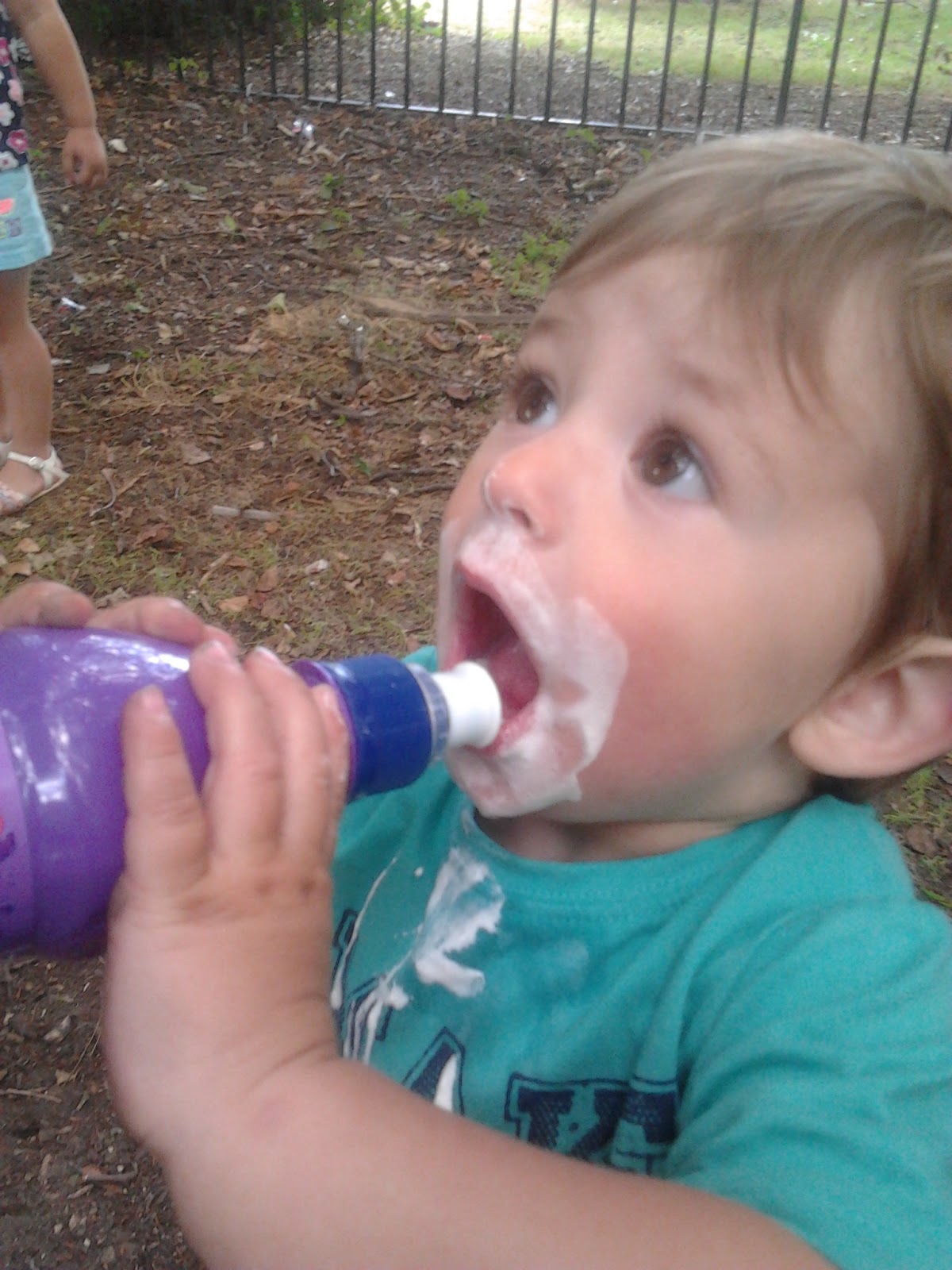 Matteo ended up wearing most of his ice-cream this morning!!!! Good thing it's bath night!